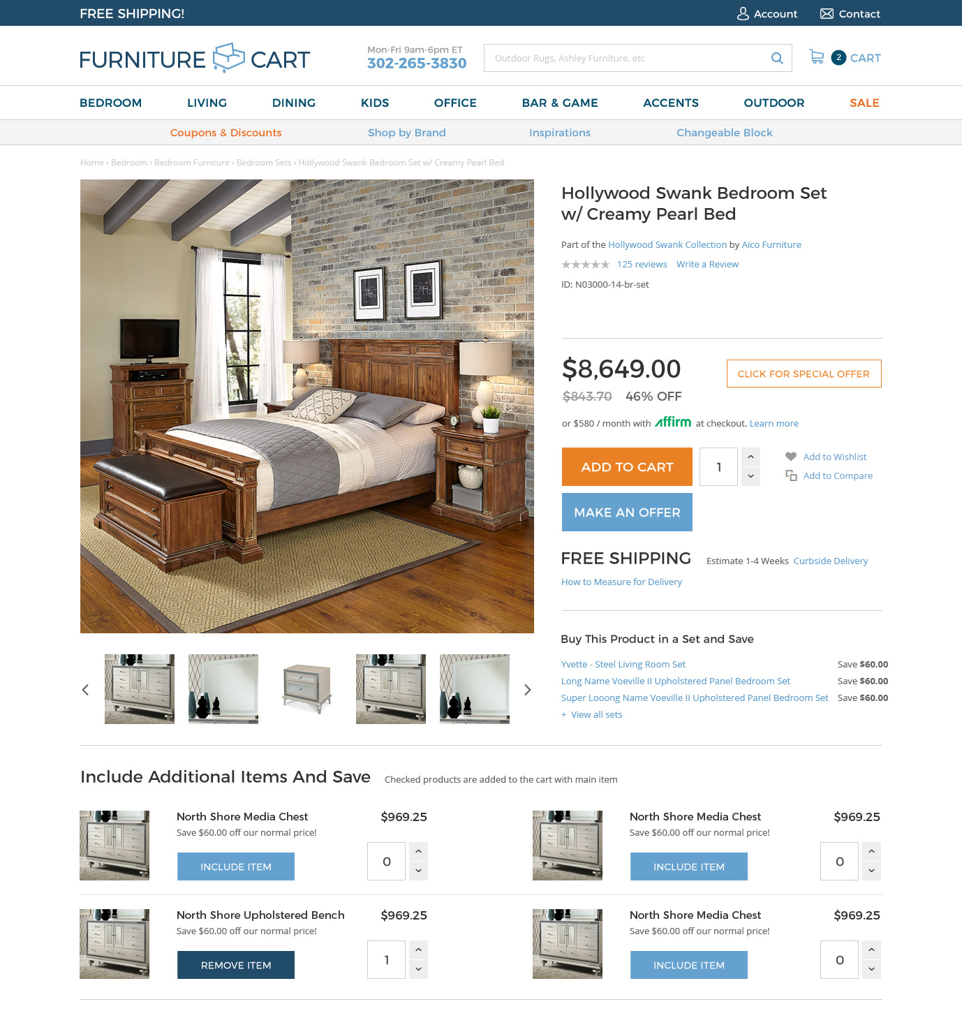 Furniture Cart website is a comprehensive resource with a clean, clear and responsive design that highlights the retailer’s products and services.