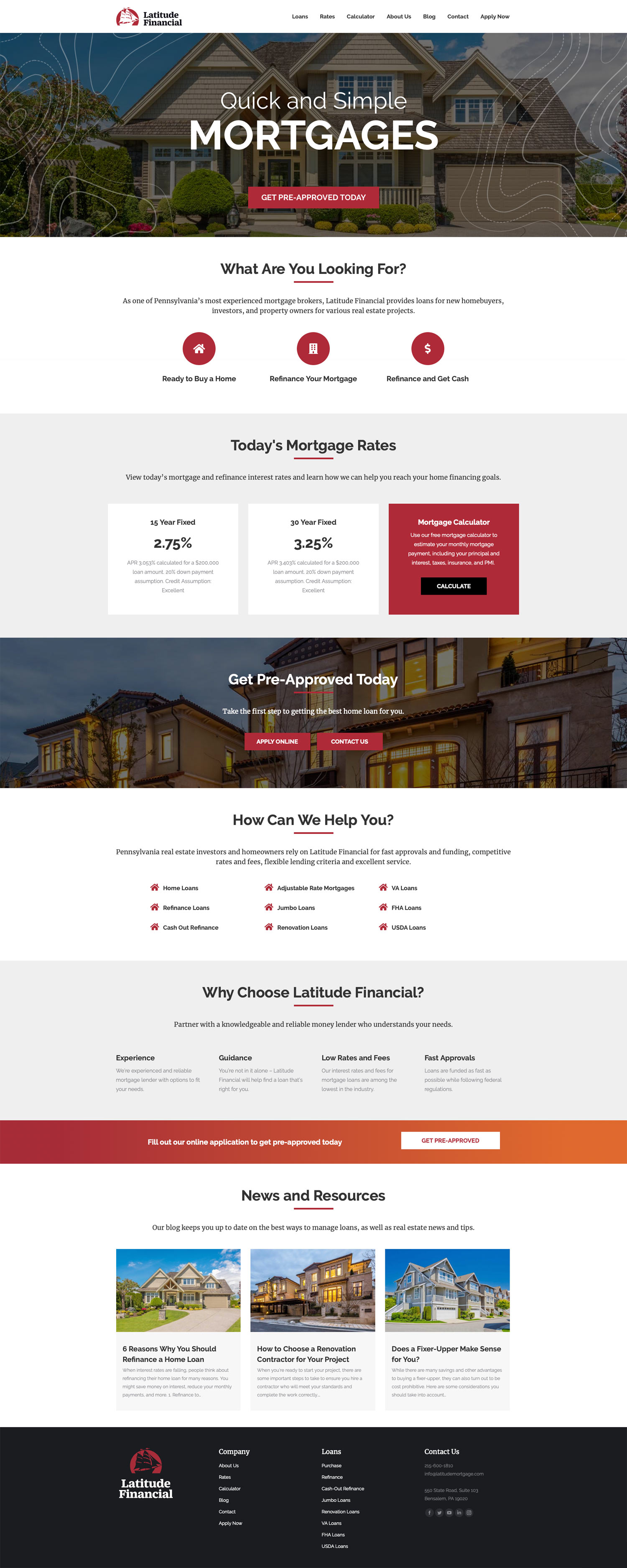 As one of Pennsylvania’s most experienced mortgage brokers, Latitude Financial provides loans for various real estate projects. To reflect their unique approach to lending, Baseline Works created a new identity and website for the firm.